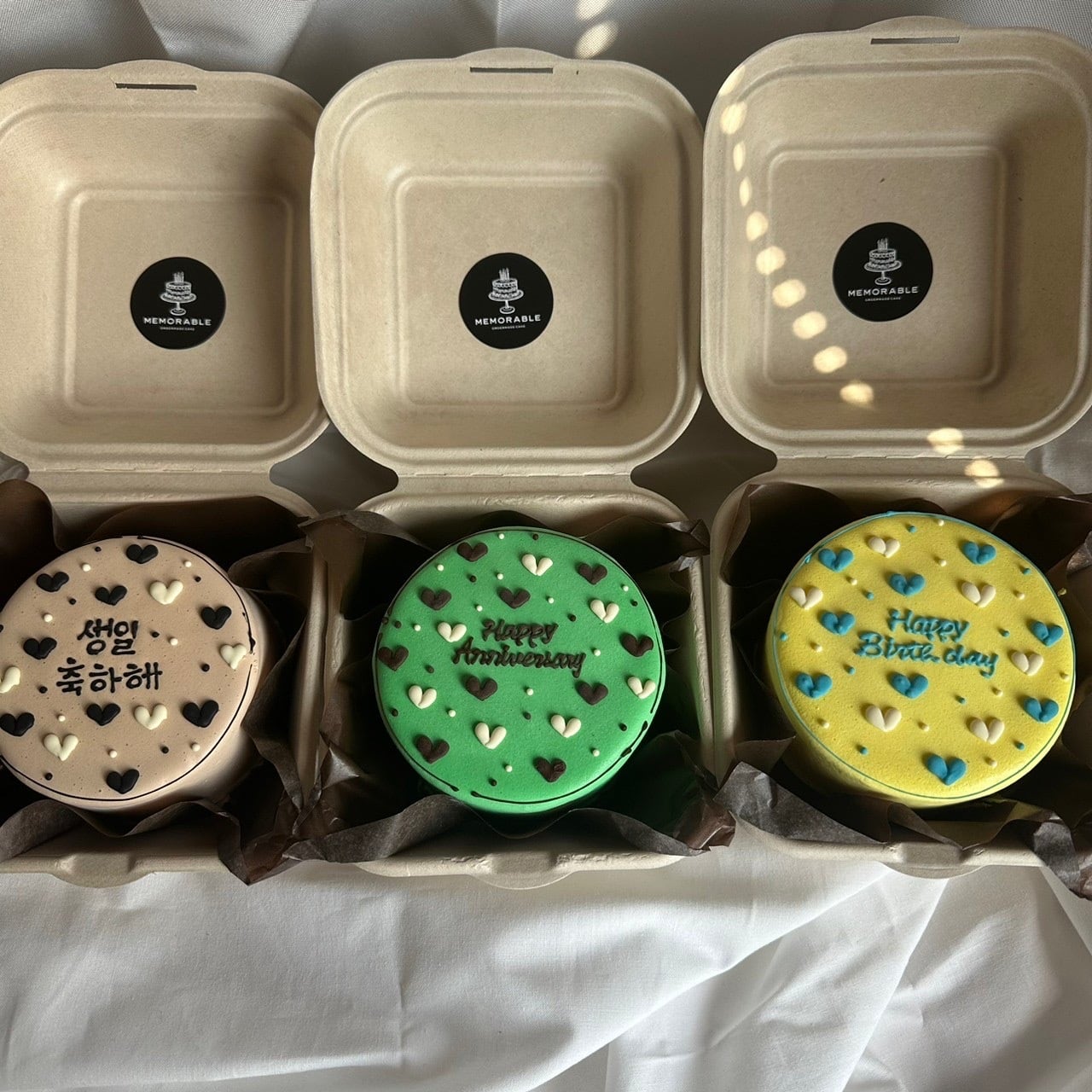 大切なメッセージを囲むように、天面に散りばめられた♡のデザインは想いのこもったステキな仕上がりに。